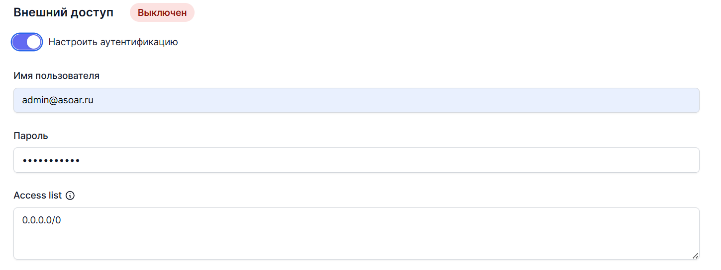 - Выкл (по умолчанию): Публичный доступ разрешён с разрешённых IP-адресов.