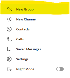 - Чтобы создать новую группу, нажмите кнопку "Создать группу" в настройках программы Telegram.