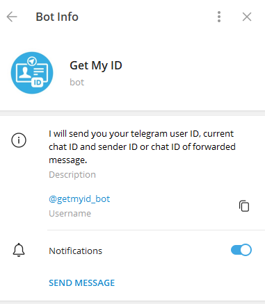 - Добавьте бота "Getmyid_bot" в новую группу.