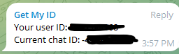 - После добавления бот сразу же напишет user_id и chat_id группы в чат