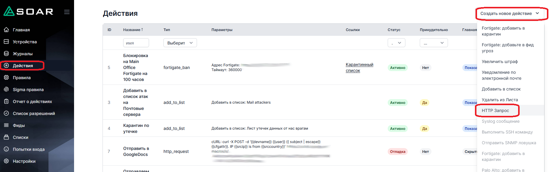 Откройте TiSoarNG, перейдите в раздел Действия, нажмите "Создать новое действие" и выберите HTTP Request.