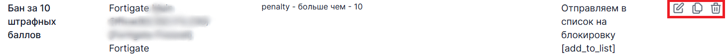 Справа от каждой строки правила находятся иконки для редактирования и удаления правил: